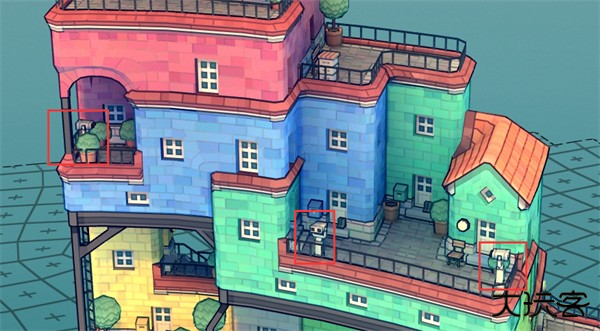 注:晾衣绳生成条件比较不易达成,5 个网格点周围放置建筑物触发晾衣绳的几率较大。