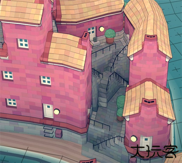 最后一个就是楼梯了,如果两个建筑之间距离一格,会形成一个小型楼梯(如右边的房子)如果距离两格,将会形成一个较大的楼梯(如图左侧所示)