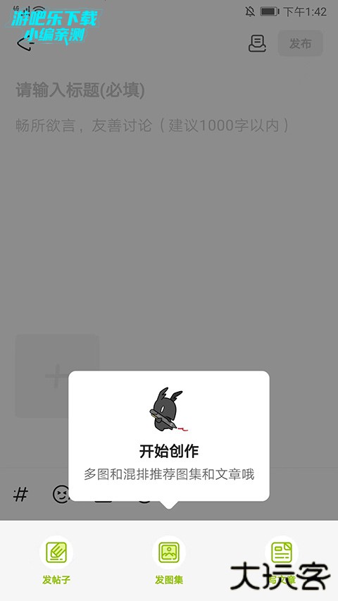 4、在游戏社区,我们还可以进行发帖子、发图集和写文章,