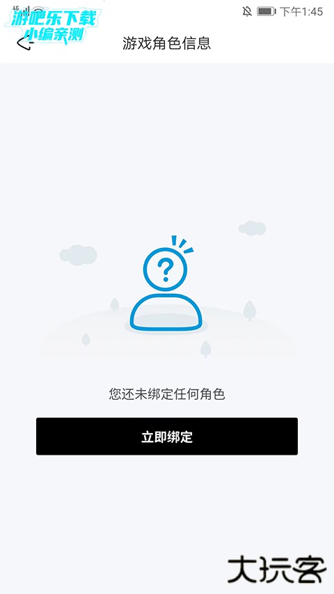 7、进入游戏角色信息界面,选择【立即绑定】选项,