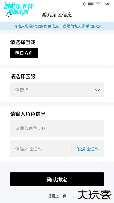 8、选择相应的游戏、区服,然后输入角色信息和验证码后,选择【确认绑定】选项就可以在森空岛中绑定游戏角色信息了。