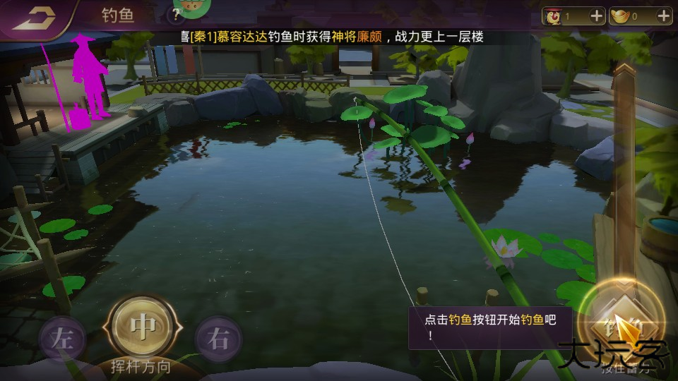 4、在游戏的鱼塘系统中,玩家可以进行钓鱼,每一次抛竿都是一次招募武将的机会。