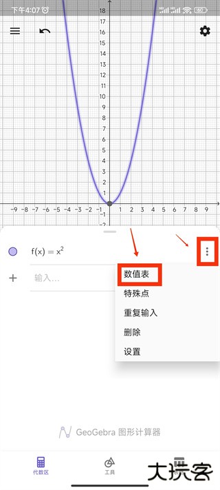 以上就是geogebra手机版画一个函数的方法教程的全部内容了。我们可以根据直接的实际需要,在左侧加号图标旁输入想要的函数后进行详细的编辑和设置。