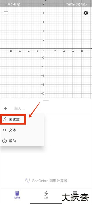 1、下载安装geogebra图形计算器安卓版,进入其主界面;