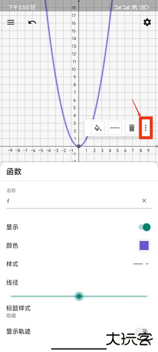 9、当你点击选中函数之后,点击旁边的三个小点可以在弹出的选项中对函数名称、颜色、样式等进行更改;