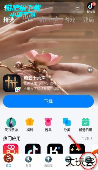 2、打开后,在主界面下拉,随便找到一个应用。如果应用旁边显示的是下载,则说明要进行王卡验证。