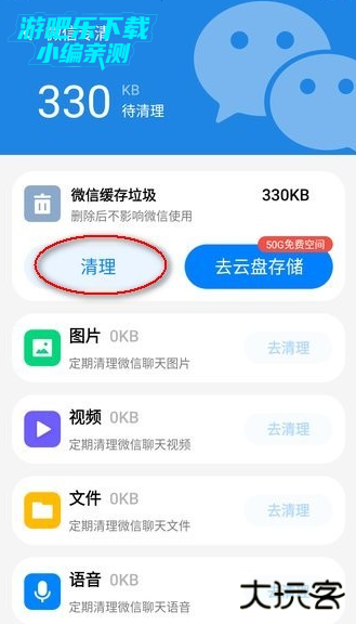 再比如微信清理,这个就是专门删除微信平时使用产生的垃圾,可选择不要的文件进行清理;