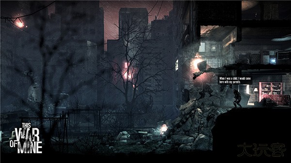这是我的战争是一款非常好玩刺激的2d横版战争冒险手游,由pc端移植而来,采用了逼真细腻的写实派画风打造,以简单黑白灰三色为主要配色,破败的建筑、荒芜的街道,哪怕原本是蔚蓝的天空都蒙上了一层灰色,大战之后的一片狼藉通过平视的视角一览无遗,将战争的残酷与冷漠很好的表现了出来。游戏讲述的是一组幸存者在战争中的废墟城市里搜集物资、努力求生的故事。