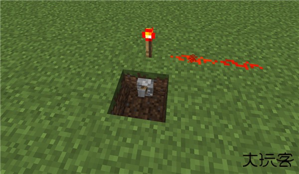 第二个是红石火把,它同红石块一样可以源源不断的提供红石信号,但是如果其附着的方块被施加一个红石信号,那么他就会变为未激活的红石火把。红石火把在激活的时候会有微弱的亮度。