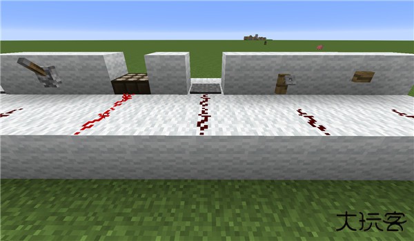 介绍完了中继器,下面让我们来笼统的介绍一下可以发送红石信号的方块。为了方便大家直观看到他们的样子,我将会在白色羊毛上放置这些方块。