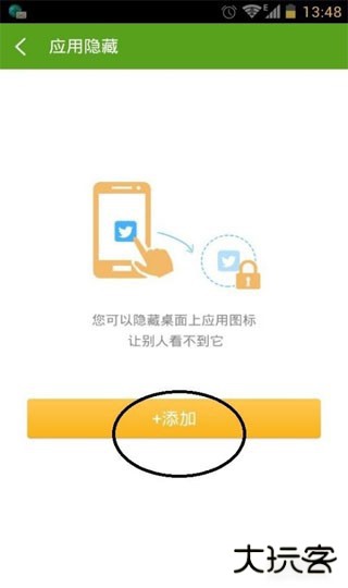点击【添加】。选择你想要隐藏的应用,避免让别人看到。比如,我选择了号簿管家。然后点击【确定】。这样就成功隐藏了号簿管家应用。