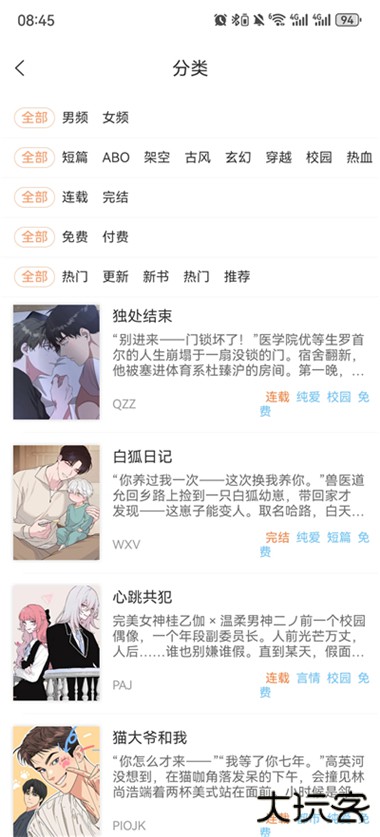 沐沐悦读App是一款主打女性向内容的漫画小说阅读平台,聚合耽美漫画、BL漫画、纯爱小说、原耽作品及多种热门题材资源,同时涵盖都市言情、历史穿越、古风同人等分类,内容更新节奏较快;沐沐悦读App支持在线阅读与离线下载功能,提供排行榜与分类检索,方便查找人气作品与对应题材,满足不同阅读偏好需求,适合喜欢看BL韩漫的朋友来阅读!