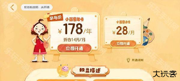 2、接着点去看看,开通小画家年卡或月卡即可解锁。