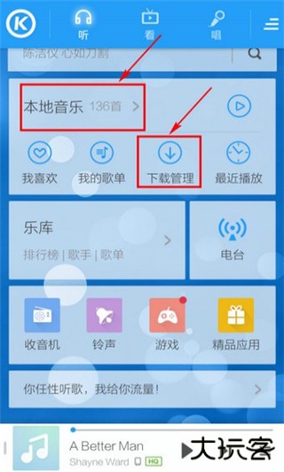 1、在【本地音乐】或【下载管理】找到已下载的歌曲