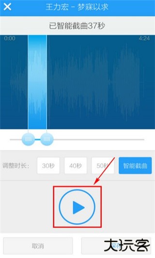 5、酷狗音乐已智能剪切歌曲高潮部分,你可以自己调整