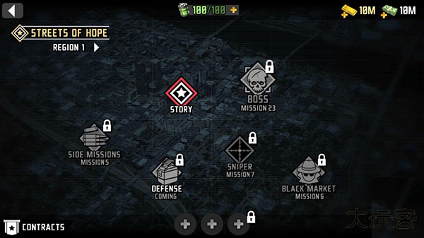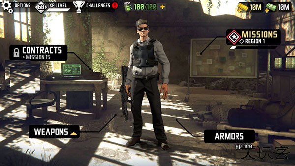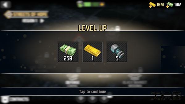1、打开最后的希望3手游最新版进入,右侧的红色按钮是任务提示,右上角是金币和钞票显示。