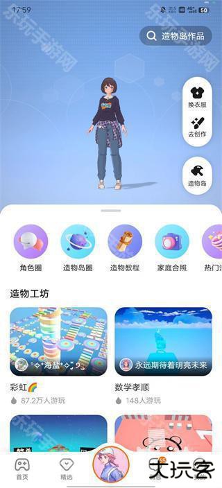 6、233乐园APP内还有造物岛功能,是自带的沙盒游戏,在其中可以实现角色捏脸、换装、地图创作等等操作,创造自由度超高,,可以和你的小伙伴一起玩哦,不用担心上手难,造物教程也为您贴心奉上。