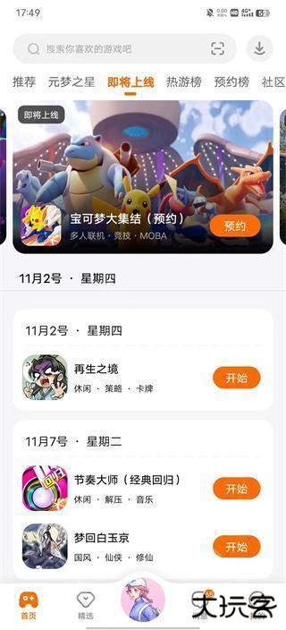 2、首页会为您推送热门、好玩的游戏,想要了解近期有哪些游戏即将上线,可以点击【即将上线】分区,会具体地为您显示,即将上线或近期上线的最新游戏,方便大家及时获取最新游戏动态,并及时预约游戏。
