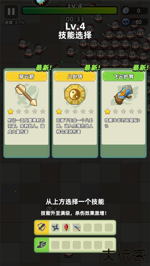 3、攒够了经验的话,角色可以提升等级,每提升一个等级,就可以自己选择一个技能;