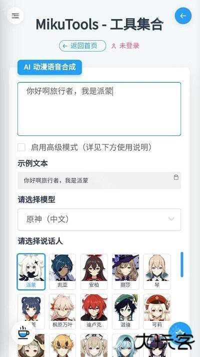 mikutools是一款可以自由进行各种语音合成的手机软件,最全面的工具集可自由选择,包括各种不同的工具,提供许多有趣的模式,你可以在这里找到各种优质服务,还可以自由享受通过使用各种工具创建的简单易用的服务,各种实时更新工具的组合带来了多样化的用户反馈。mikutools是一款非常实用的辅助工具,其中为用户们提供了非常丰富的功能,在这里大家可以看到最新的番剧时间表,查询天气、数据转换、修改图片等,并且目前还在不断更新更多的功能,为用户们提供非常好的使用体验。此外,平台内还为喜欢玩原神的玩家们提供了原神语音合成工具,让大家可以与原神中的各种角色进行对话。mikutools安卓版是一款十分有趣的轻量工具集合箱小软件,能够给用户们提供数十款实用的小功能,比如大家非常喜欢的原神语音合成,只需要简单的输入你想要的语音文本,然后选择你喜欢的原神角色之后就可以轻松制作出真实感十足的原神语音啦,可以用来设定闹钟、铃声以及各种提示音等等,想想要是你的原神老婆叫你起床的话,肯定就不会赖床了,而且里面可供选择的原神角色非常多,能够满足不同用户的使用需求。感兴趣的可以来乐玩网下载试试哦