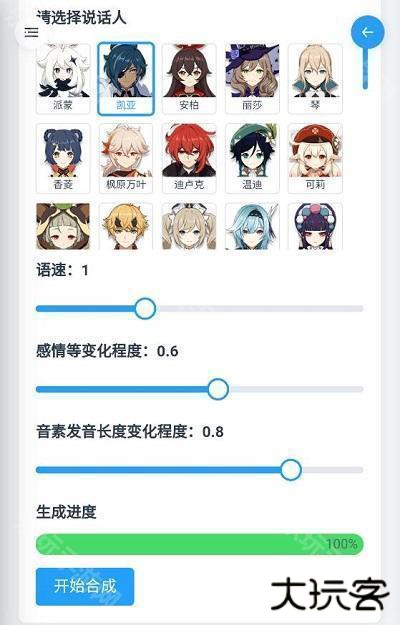 1、每次进行语音合成都是极其的方便,不同的游戏角色声音去进行生成;