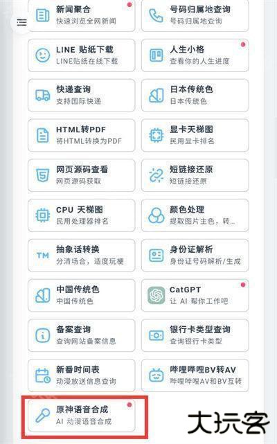 2、在软件界面下滑,在【其他工具】栏目中的最下方就可以找到【原神语音合成】点击进入到功能界面中;