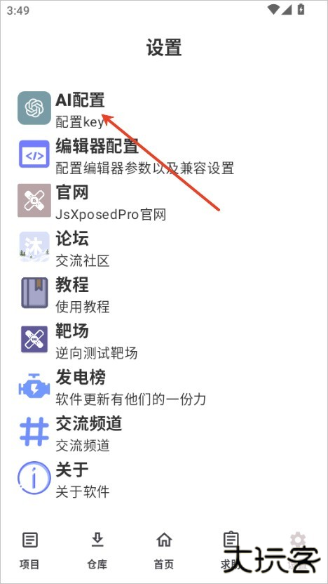 2、在设置中选择ai配置,可以自动帮你配置key;