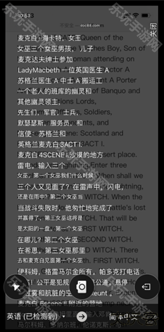 5、接着点击“共享”按钮,在下方的软件中找到“翻译”然后点击,会自动弹出翻译界面,然后我们选择需要翻译的语言后,系统就会自动实现双语对照的翻译。