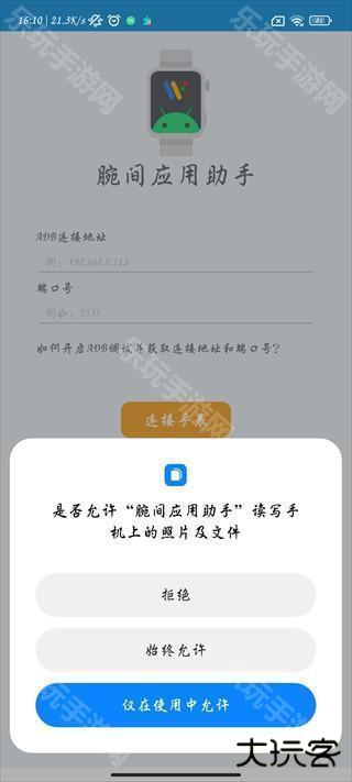 1、下载并安装腕间应用助手app在手机上,打开软件,授予软件读取文件权限(这步很重要);