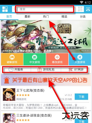 软天空游戏盒子是一款拥有特别多游戏资源的下载平台软件。软件中会给你收录大量的游戏资源,各种游戏类型都能在这里找到,特别齐全,每一款游戏的非常热门的。包含了回合角色、网络游戏、动作冒险、即时角色、体育运动、模拟经营、策略塔防等。你找到喜欢的游戏后可以一键下载。自适应你的手机配置,让你不用再去其他的平台寻找安卓,给你一站式稳定下载体验。如果有游戏首发,还会给你发起通知,使你不会错过任何一款优质的游戏。