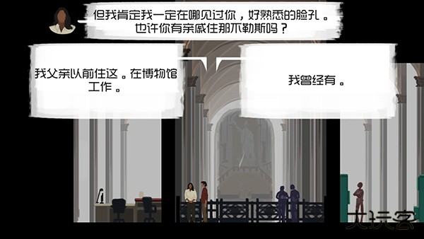 (父母结婚照与相框里的父子照,说明父亲其实相当挂念母子。) 出门与两个NPC的闲聊之后,一路向左,走到尽头即那不勒斯博物馆。