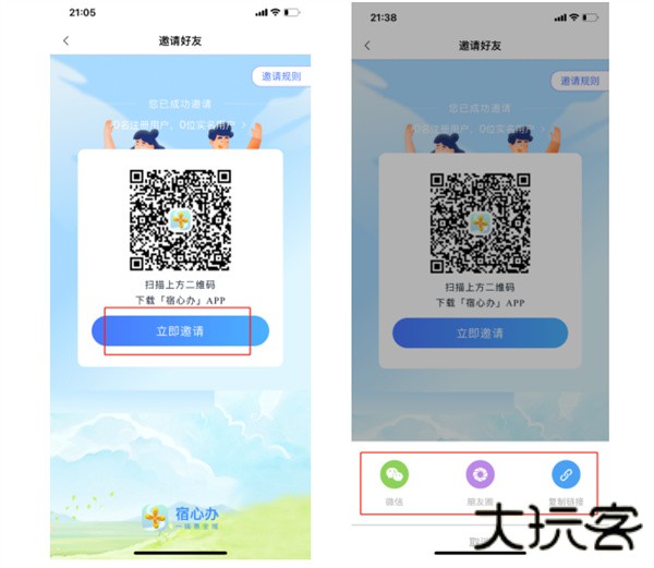 3、用户实名认证后,即可通过【我的】-【邀请好友】出示个人二维码或通过【立即邀请】进行 APP 分享,扫描该用户二维码或通过该用户分享链接注册成功的用户也将计入该单位注册用户数。
