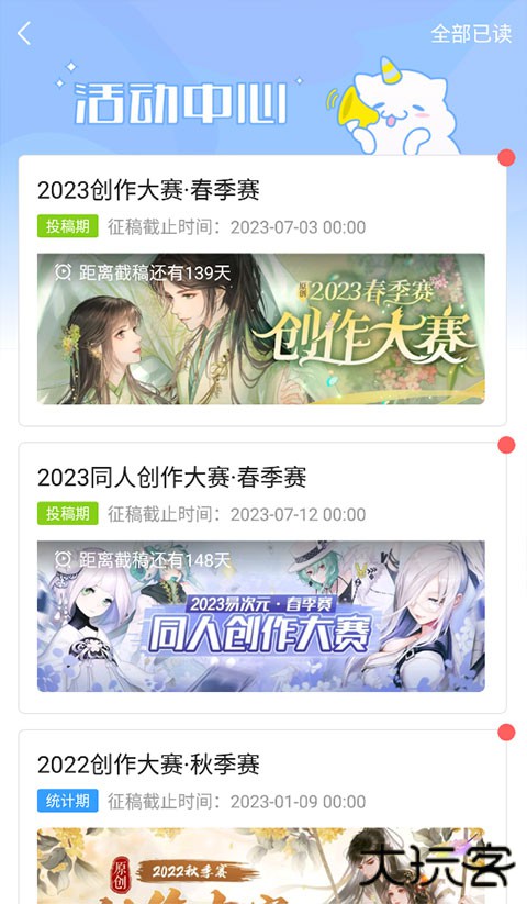 5、除了观看,还可以自己参与到其中,超多赛事和征稿等你来参与~