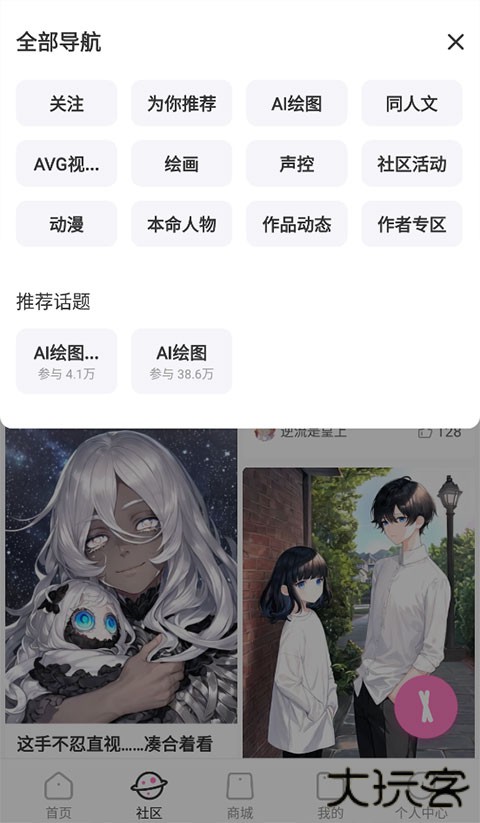 4、切换到社区,这里有众多你感兴趣的话题,例如ai绘图、声控、绘画、动漫等。