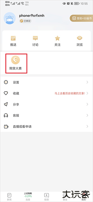 1、打开和讯财经app,在我的界面中点击期货大赛