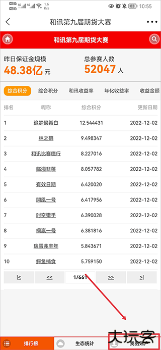 2、在大赛排行页中,点击右下角我的账户