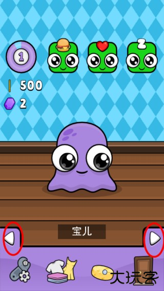 1、进入游戏,上方会呈现宠物的当前状态,如现在我们的小宠物饿了