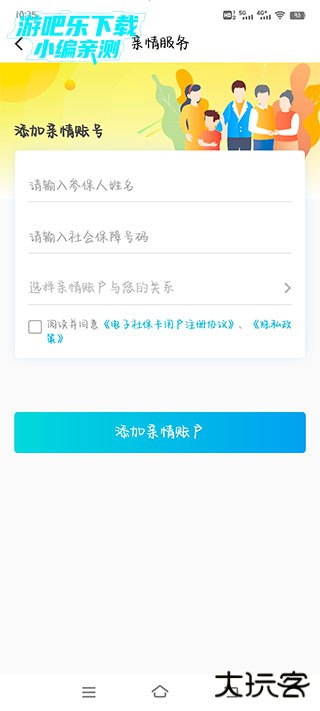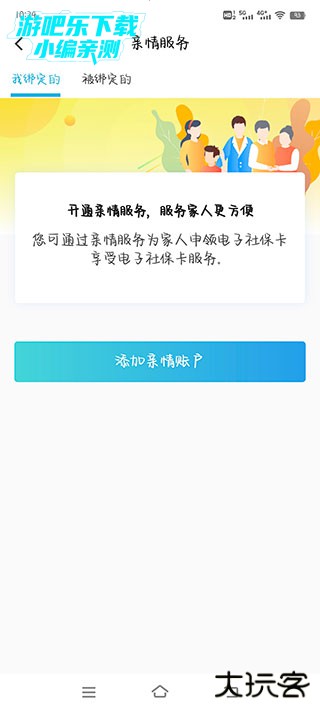 4、选择添加亲情账户,已绑定的可以选择被绑定的页面来查看家人电子社保卡信息;