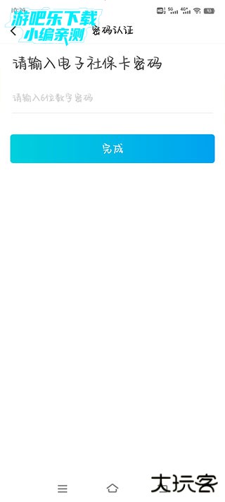 5、点击添加亲情账户后,弹出密码认证,输入6位密码,点击完成。(该密码是社保卡密码,不是登录密码)