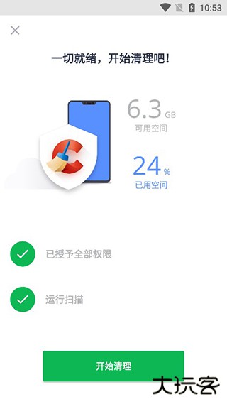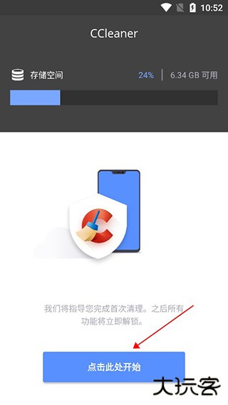 1、在本站下载安装ccleaner,首次进入软件会指导用户完成清理,我们点击开始;