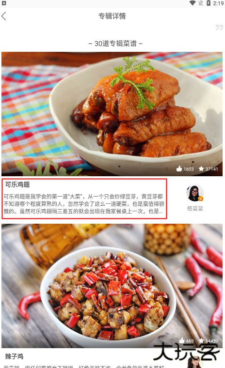 2、我们点开一个专辑可以看到某道菜的介绍和心得;