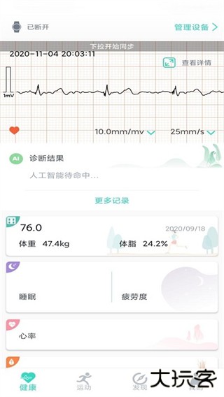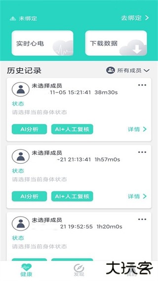 3、在健康板块可以查看各种心电图的历史记录,还支持AI分析,方便用户查看。