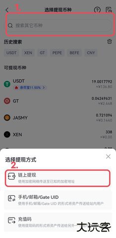 步骤一:登录您的Gate.io账户,点击页面底部的“资产”,选择“提现”。