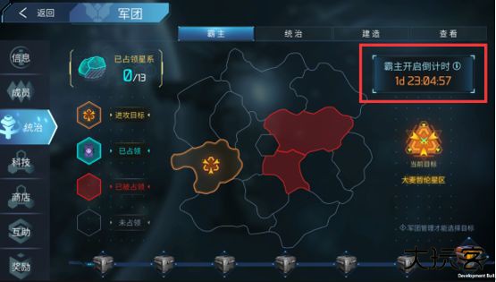 在霸主计划开启前可以在军团界面自由选择进攻星系,同时将所有星系分为若干星区,这方面的内容,在军团内的统治界面有详细的说明,届时可以自行打开查看哦~