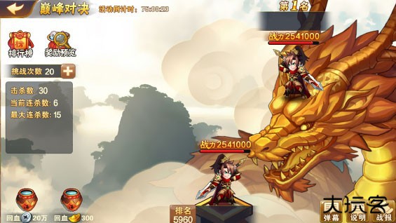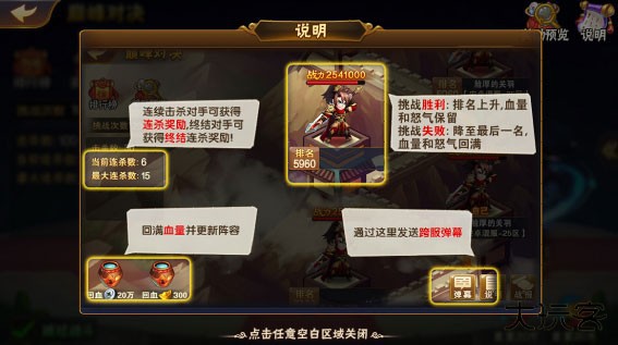 4、 玩家挑战比自己排名高的对手并挑战成功后,顶替对手的排名,并且战斗失败一方掉到最后一名