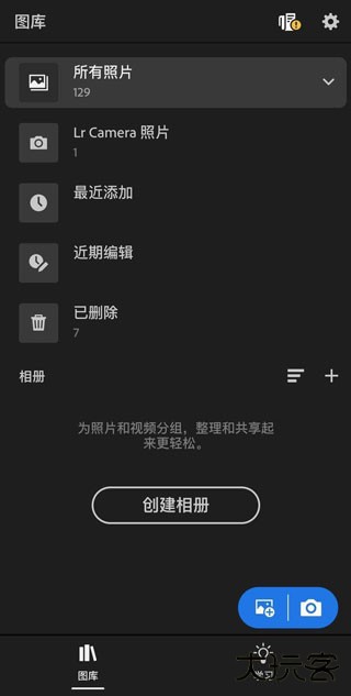 首先,打开adobe lightroom安卓版软件,登录后出现如下页面: