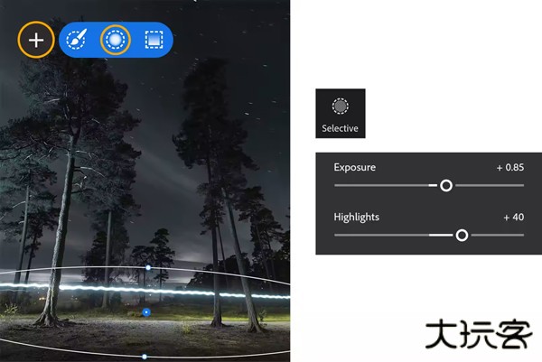 “选择性”——其实这个功能不应该放在基础调整里面,属于中后期的局部调整了。但因为它是付费功能,可能lr想吸引部分人使用这个付费功能,就排在了第一位。作用是针对性地对图片的任意部分,进行精确处理。snapseed中的“局部”功能可以替代这个功能;