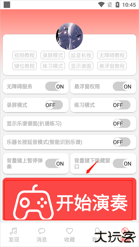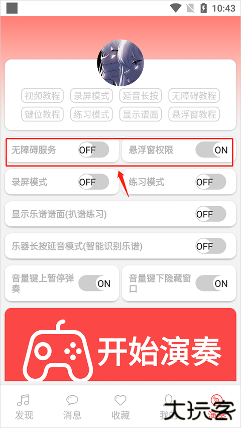 2、无障碍故障/无法运行,打开关闭连点三次解决或重启手机,后台锁定软件可减少闪退,然后点击“开始演奏”。