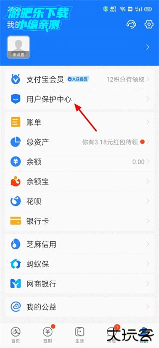1、小编以支付宝为例,在我的界面中找到用户保护中心。