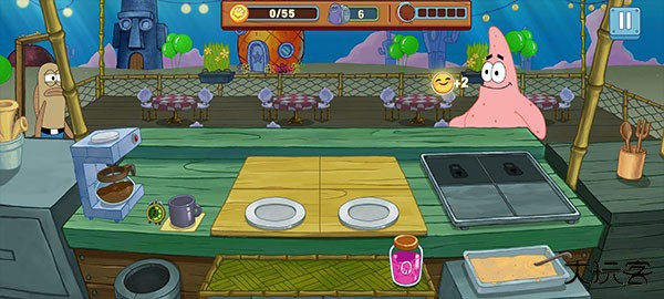 1、闯关升级: 准备好制作蟹肉饼、煎饼、烧烤等各色菜看了吗?你的顾客包括派大星、珊迪·奇克斯和章鱼哥等许多老朋友。让顾客满意,并获得小费、点赞和激动人心的奖金。从初级煎炸厨师起步,经过培训,成为比奇堡的顶级快餐大厨!